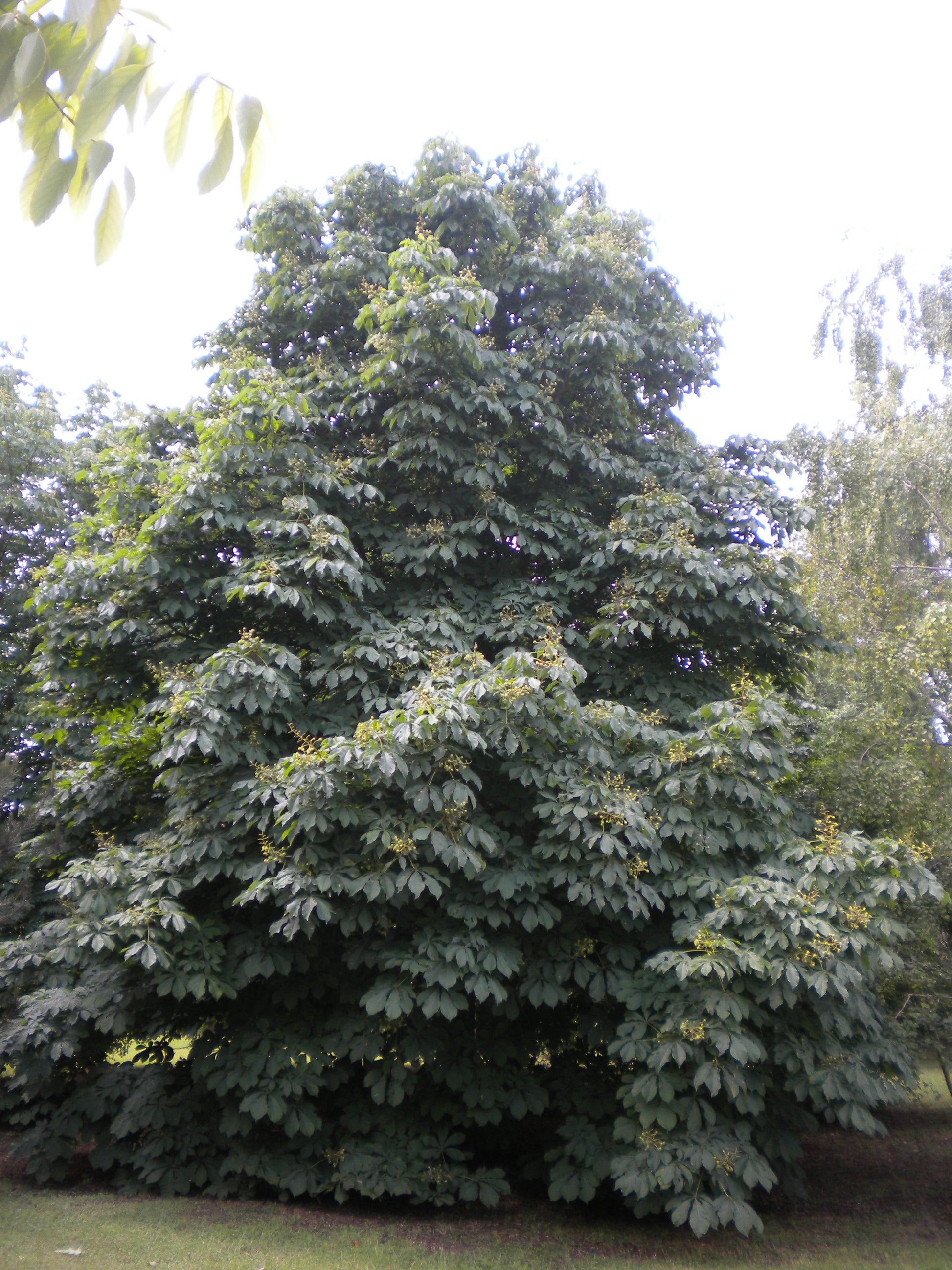 Genus of 15 species of deciduous trees and shrubs, mainly from the woodlands of southeastern Europe, the Himalayas, eastern Asia and North America. The aesculus hippocastanum is a splendid tree that can reach 25-30 m in height and its deciduous crown can reach 10 m in diameter. The leaves are bright green on the upper side and light green on the lower side, they are opposite palmate-septate in shape. Flowering occurs in spring and the flowers are gathered in a panicle inflorescence, white and small in size. The fruits are greenish capsules equipped with spines that open into three valves and contain a large shiny brown seed that resembles a chestnut but unlike the latter, the fruits of the horse chestnut are not edible.