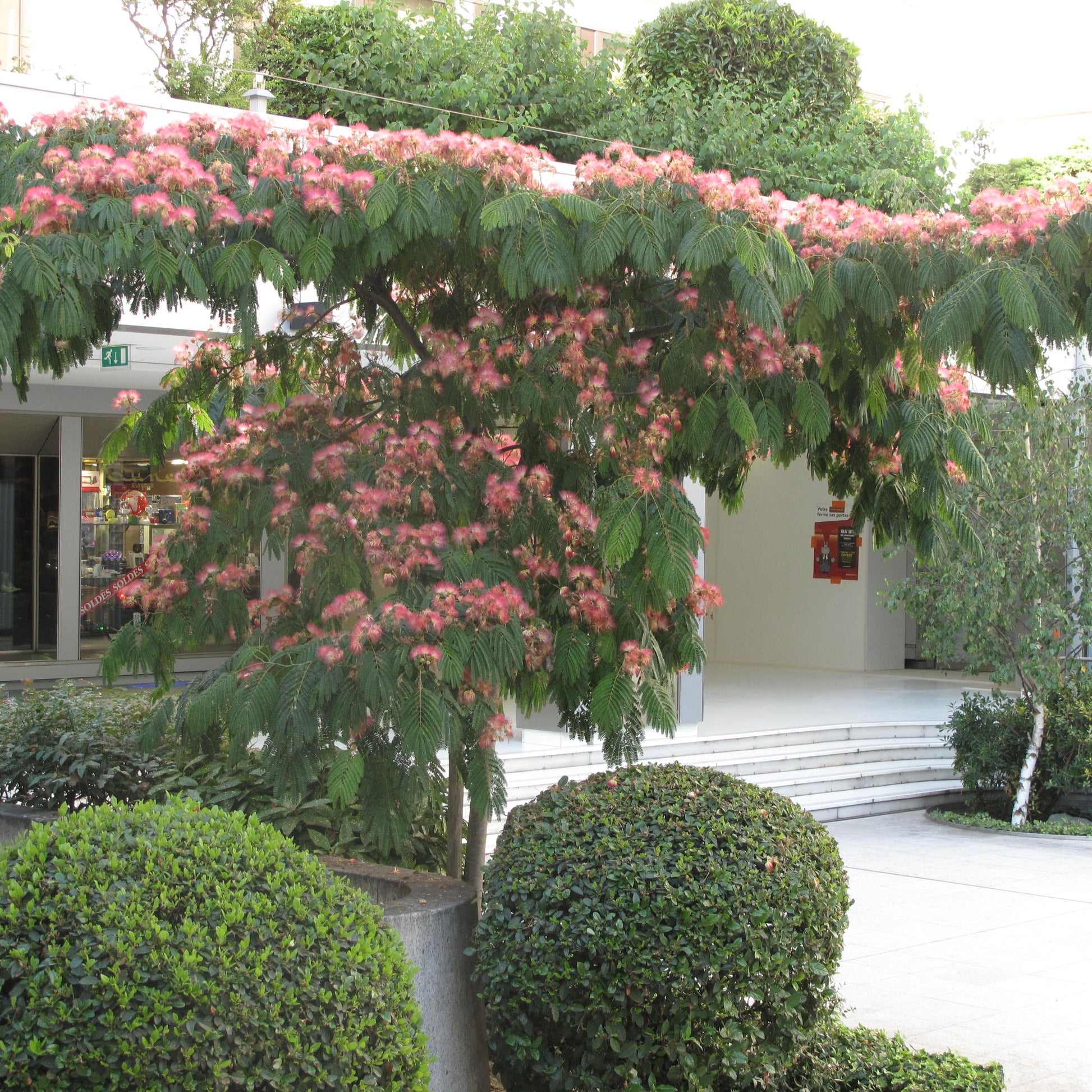 Genus of about 150 species of deciduous trees and shrubs often found in poor soil, in tropical and subtropical regions of Africa, America, Asia and Australia. Albizia julibrissin is a deciduous tree 5-12 meters tall with a wide, spreading foliage reminiscent of that of African acacias. The bark is light gray with greenish shades, bipinnate leaves 20 to 45 cm long and 12 to 25 cm wide. In summer, this variety produces terminal inflorescences of intensely pink scented spherical floral heads.