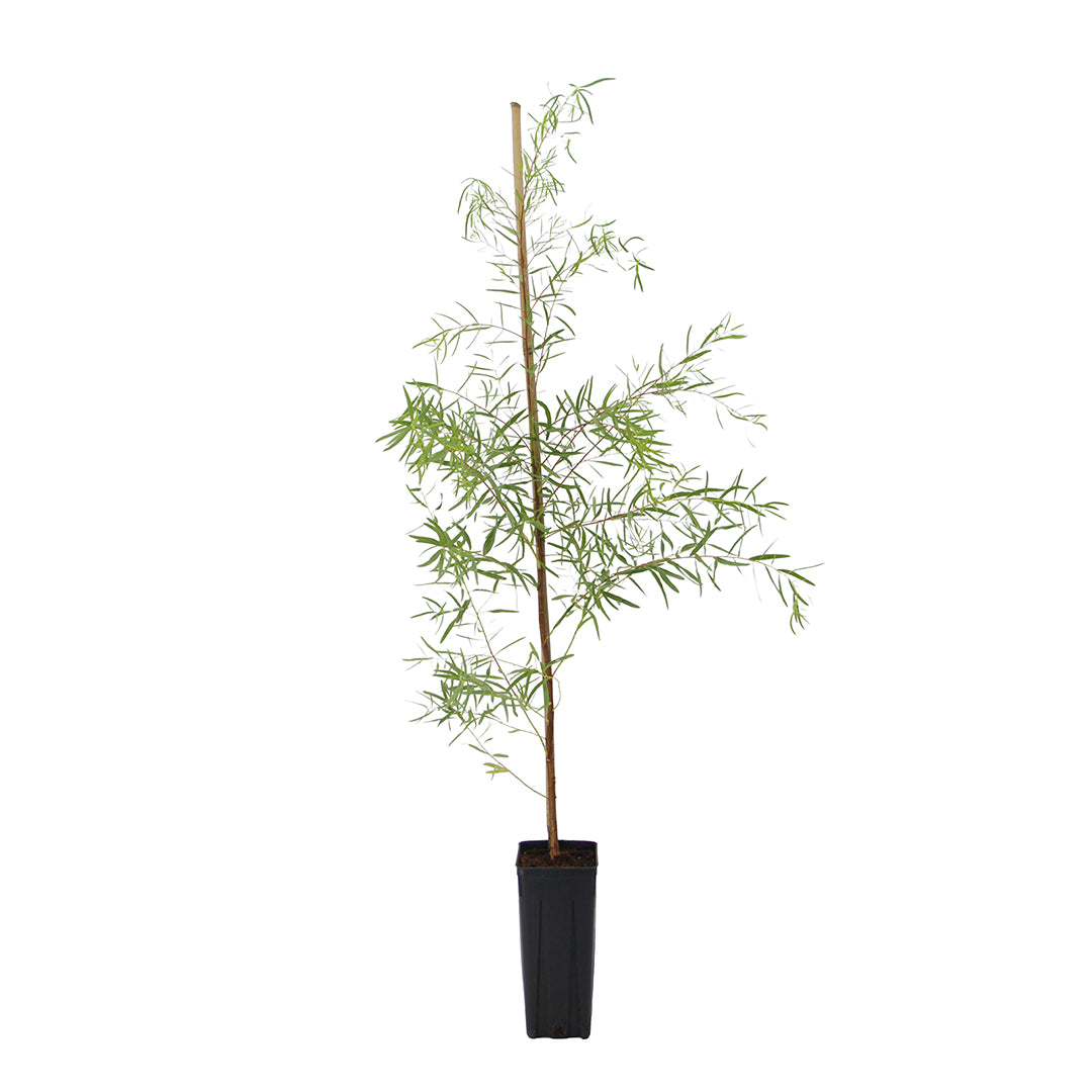 Genere che comprende oltre 700 specie di alberi e arbusti sempreverdi, appartenenti alla famiglia delle Myrtaceae, originari dell’Australia e di alcune isole dell’Oceania. Eucalyptus nicholii è un albero sempreverde a crescita rapida, di taglia media, molto apprezzato per il suo portamento elegante e il fogliame aromatico e decorativo. In coltivazione raggiunge un’altezza compresa tra 6 e 12 metri, con chioma densa, compatta e leggermente pendula. Le foglie sono sottili, strette e lanceolate, di colore verde glauco, intensamente profumate per la ricca presenza di oli essenziali. Fiorisce tra la fine dell’estate e l’inizio dell’autunno, producendo piccoli fiori bianco-crema riuniti in gruppi ascellari.