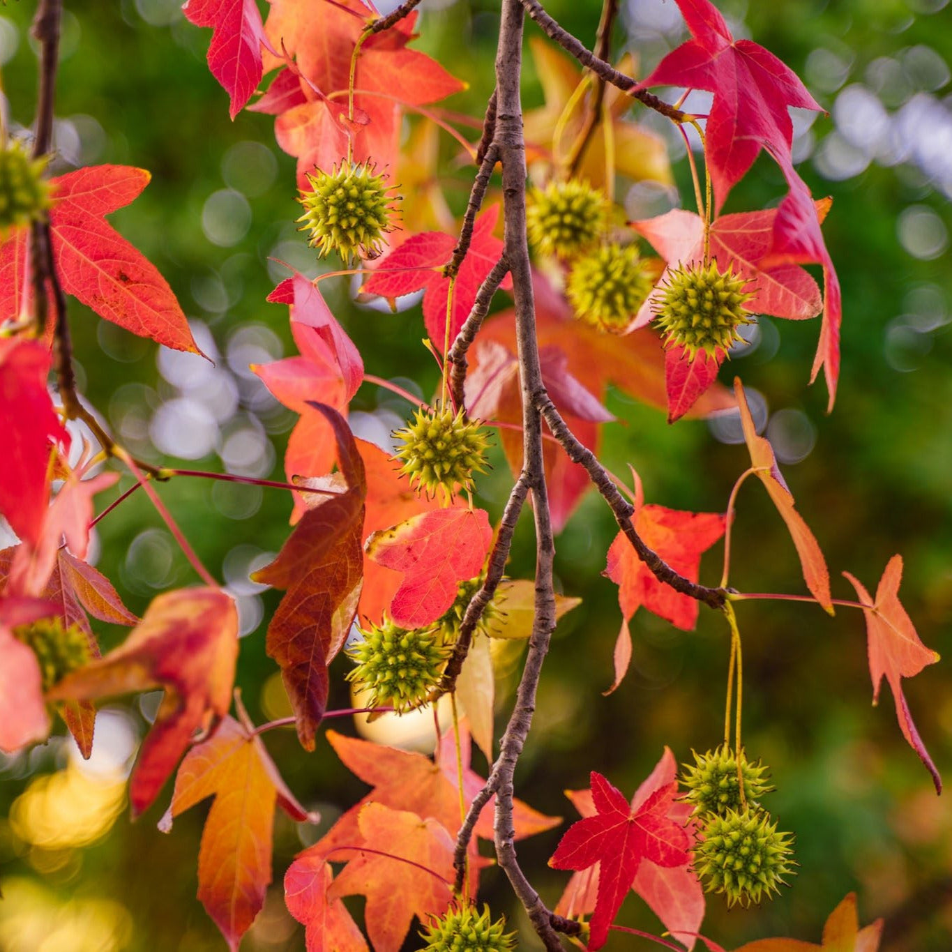 Genere comprendente 4 specie di alberi decidui monoici che vivono principalmente nei boschi umidi dell’asia, dell’America e del Messico. Il Liquidambar styraciflua è un albero deciduo di grandi dimensioni che può raggiungere i 25-30 metri d’altezza. Presenta tronco slanciato e molto ramificato. La chioma inizialmente piramidale, diventa ovale negli esemplari adulti. Le foglie sono alterne, palmate, con margine seghettato di color verde scuro, mentre in autunno, prima della caduta, assumono magnifiche tonalità rosse. I fiori sono poco vistosi, di colore giallo-verde. Il frutto è un’infruttescenza globosa, legnosa a maturità.