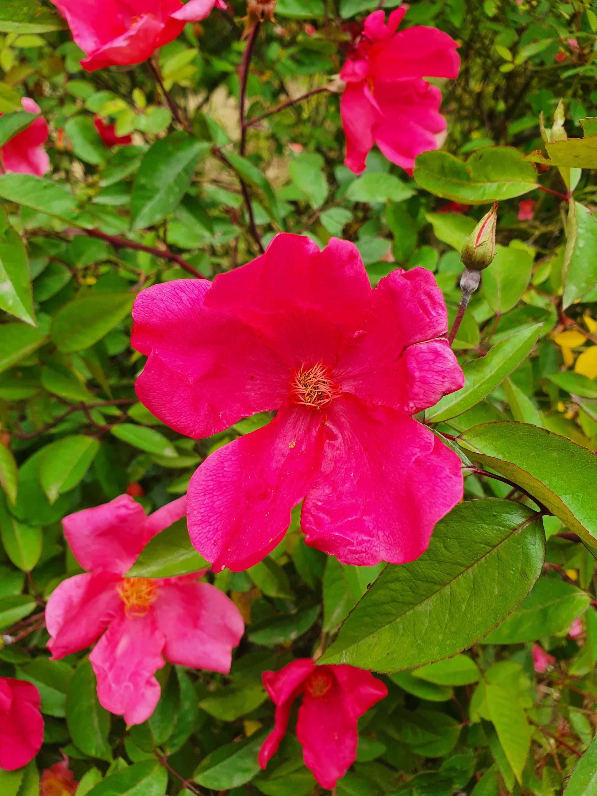 Genus of approximately 150 species of perennial, semi-evergreen or deciduous shrubs and climbers. They are found in a wide variety of habitats in Asia, Europe, North Africa and North America. Rosa chinensis var. mutabilis is a compact and highly branched shrub up to 1.5-2 m tall. The leaves are composed of 3-5 oval or elliptical leaflets with toothed margins; these are initially burgundy and then turn to light green. The peculiarity of this cultivar is that it has yellow, orange and pink flowers on the same plant, depending on the degree of maturation of the petals. Due to this characteristic it is commonly called "rainbow rose" or "iridescent rose". Flowering is very long and begins in May and then ends in autumn with the arrival of the first cold weather.