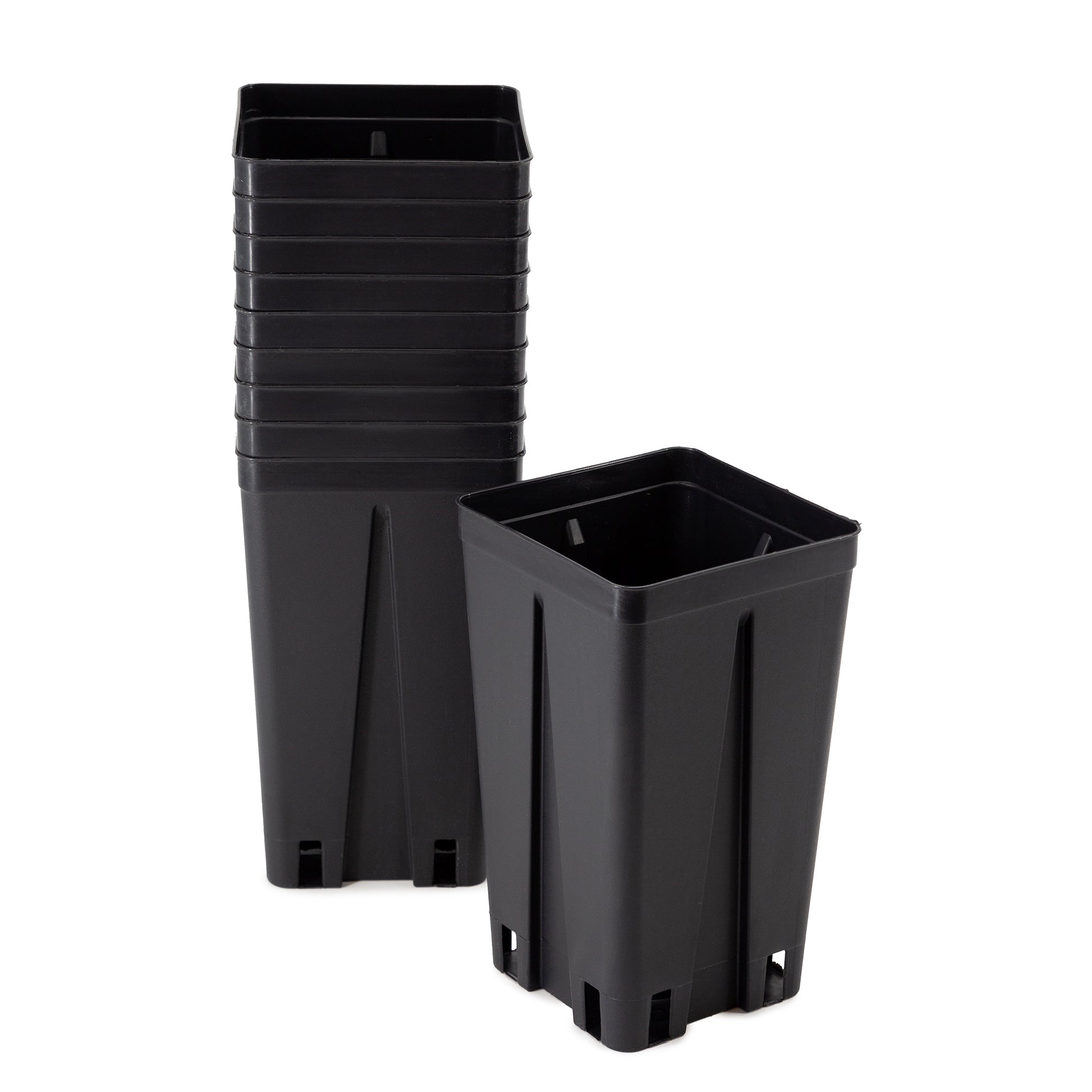 They have a rectangular shape (with a square base) and are made of high quality recyclable plastic with reinforced edges.