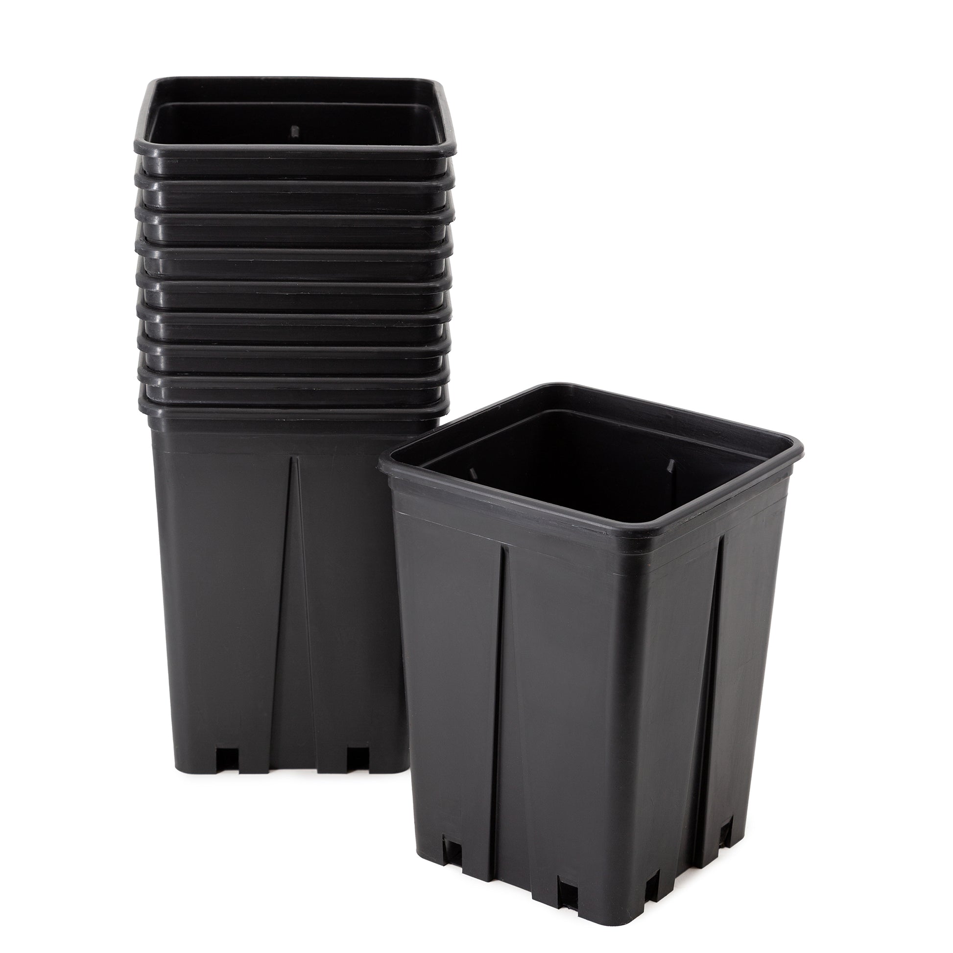They have a rectangular shape (with a square base) and are made of high quality recyclable plastic with reinforced edges.