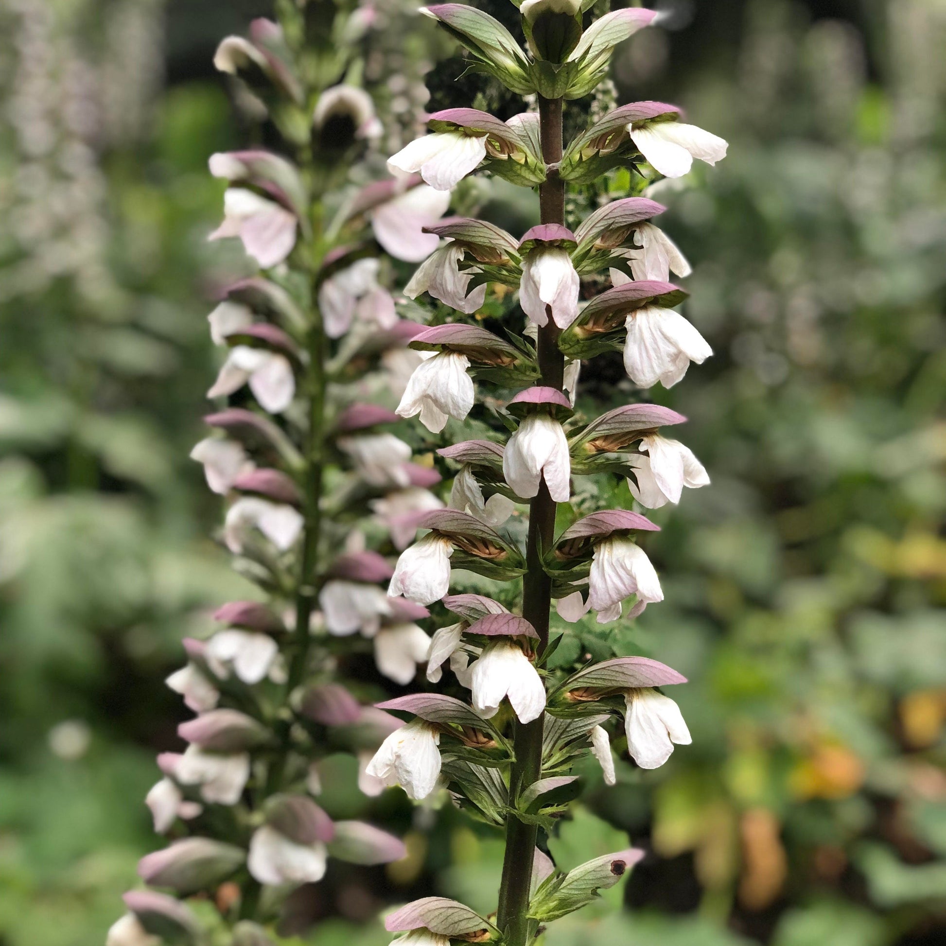 Magnifica erbacea perenne alta fino a 80-100 cm diffusa in tutti sottoboschi mediterranei. Foglie grandi, di color verde scuro a margini incisi e frastagliati. Fiori bianchi con calice viola, su infiorescenze alte fino a 120-150 cm.