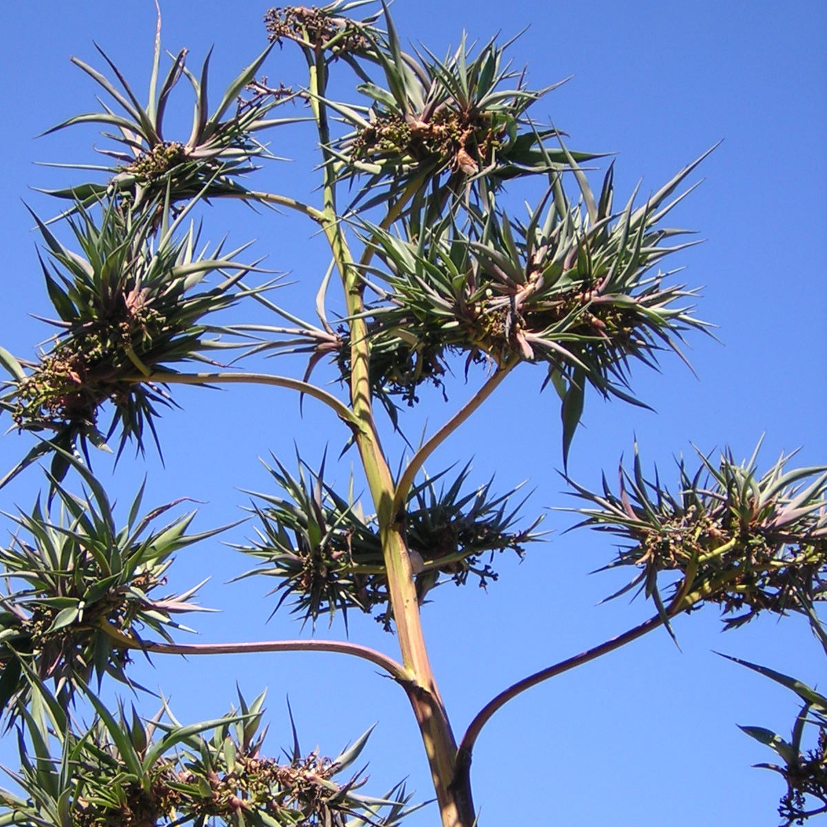 Genere di oltre 200 specie di perenni e succulente monocarpiche formanti rosette, delle regioni desertiche e montuose dell’America settentrionale e centrale. L’Agave tequilana è una specie di grandi dimensioni e raggiunge a maturità i 3-3,5 m di altezza, ed un eguale larghezza. Ha lunghe foglie rigide di colore glauco lunghe fino a 1,5/2 m e larghe 12-15 cm che portano robusti aculei agli apici e minute spine ai margini. Dopo la fioritura, che avviene generalmente dopo 15-20 anni, la pianta muore. Questa specie, come diverse altre specie, produce all’apice dell’infiorescenza, numerosissimi propaguli (figli), che cadendo al suolo radicano prontamente. Agave tequilana difficilmente produce semi in quanto si tratta di una selezione umana sterile (triploide). È una importante risorsa economica messicana per la produzione della tequila e per il succo d’agave utilizzato come dolcificante.