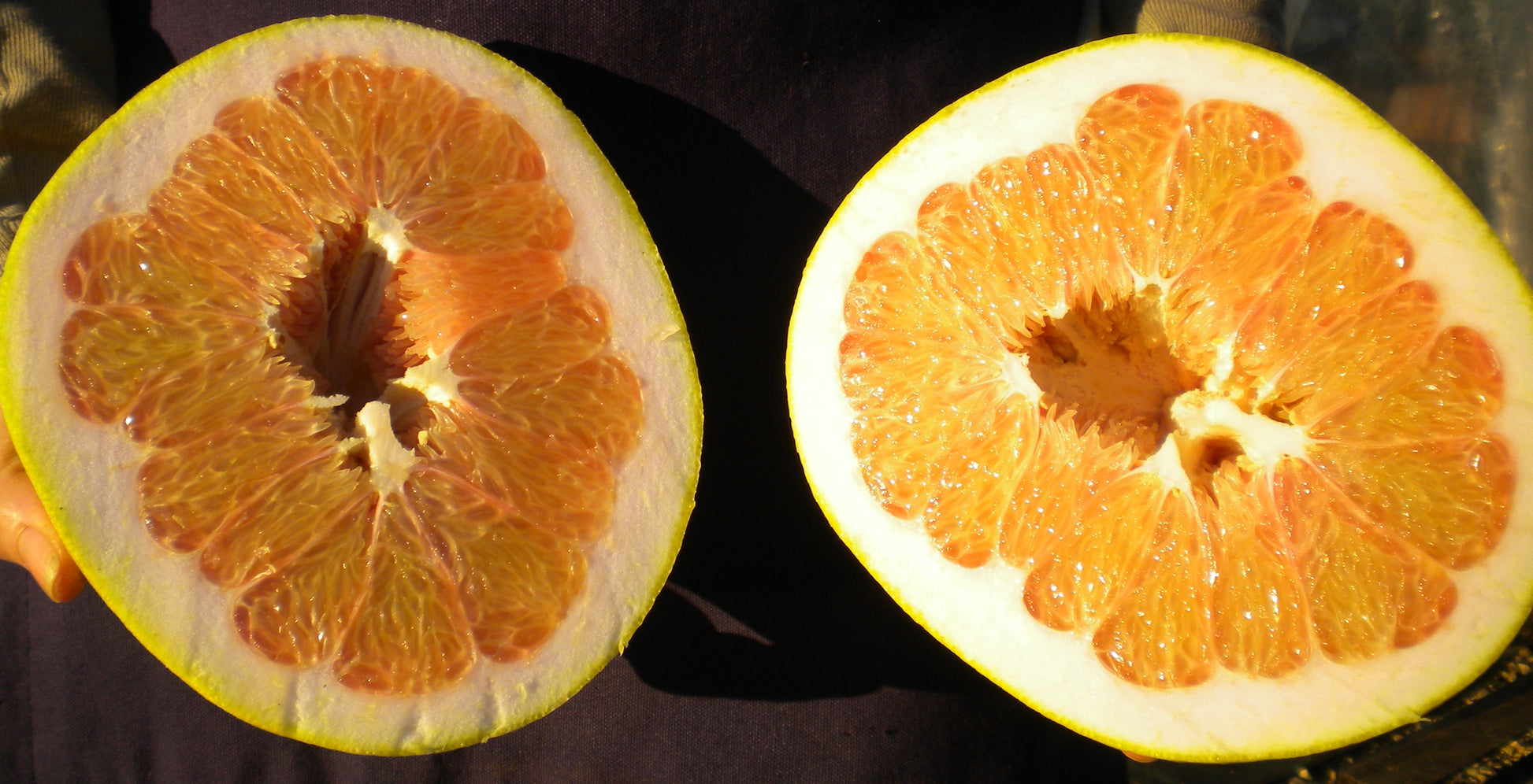 Genere di circa 12 specie di alberi e arbusti sempreverdi, originari dell’Estremo Oriente. Il Citrus maxima è un piccolo albero sempreverde che ha la caratteristica di produrre frutti estremamente grandi; fino a 30 cm di diametro e 3 kg di peso. Il sapore di questi frutti è acidulo amaro, essi sono molto succosi e utilizzati sia per il consumo diretto, sia per la preparazione di succhi. Questo agrume ha chioma tondeggiante, regolare e foglie verde scuro, ovate, persistenti, con picciolo alato. I fiori, grandi, bianchi, sono isolati o riuniti in racemi ascellari. Il frutto è di forma tondeggiante o piriforme con buccia giallo chiaro e polpa chiara o rosa salmone. Le varietà sono generalmente di provenienza americana o asiatica.