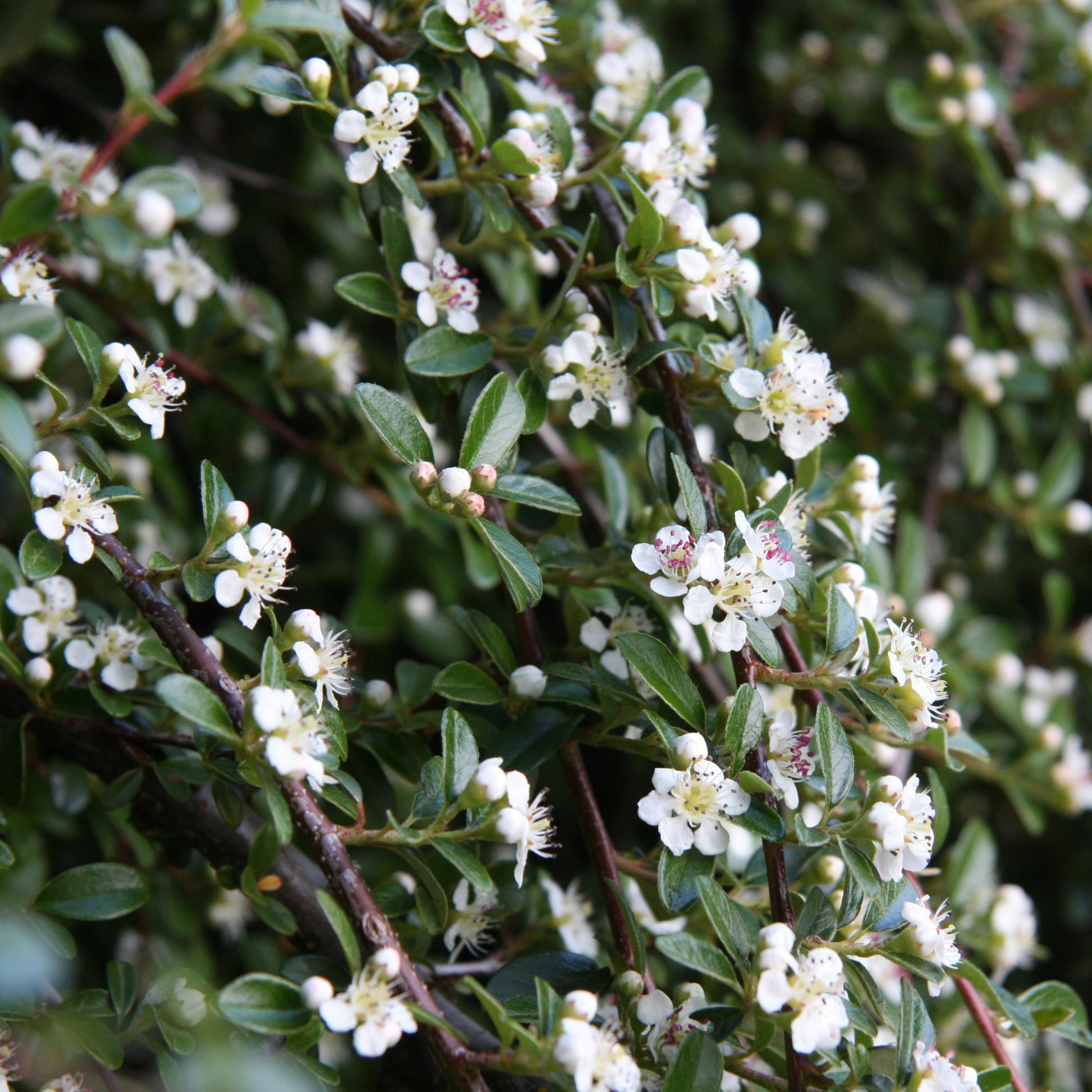 Genere che comprende oltre 200 specie di arbusti decidui o sempreverdi, originari dell’Asia centro-meridionale, dell’Europa e del Nordafrica, appartenenti alla famiglia delle Rosaceae. Cotoneaster franchetii è un arbusto semisempreverde, di medio sviluppo, dal portamento espanso ed arcuato, che può raggiungere un’altezza compresa tra i 2 e i 3 metri. I rami giovani sono tomentosi, di colore bruno-aranciato, e tendono a ricadere elegantemente con l’età. Le foglie sono ovate, coriacee, di colore verde-grigiastro nella pagina superiore e bianco-argentee in quella inferiore, coperte da una fitta peluria. In tarda primavera produce piccoli fiori a cinque petali, bianco-rosati, riuniti in corimbi. I frutti, di forma sferica e colore arancio vivo, maturano in autunno e persistono a lungo sulla pianta, conferendole un notevole valore ornamentale.