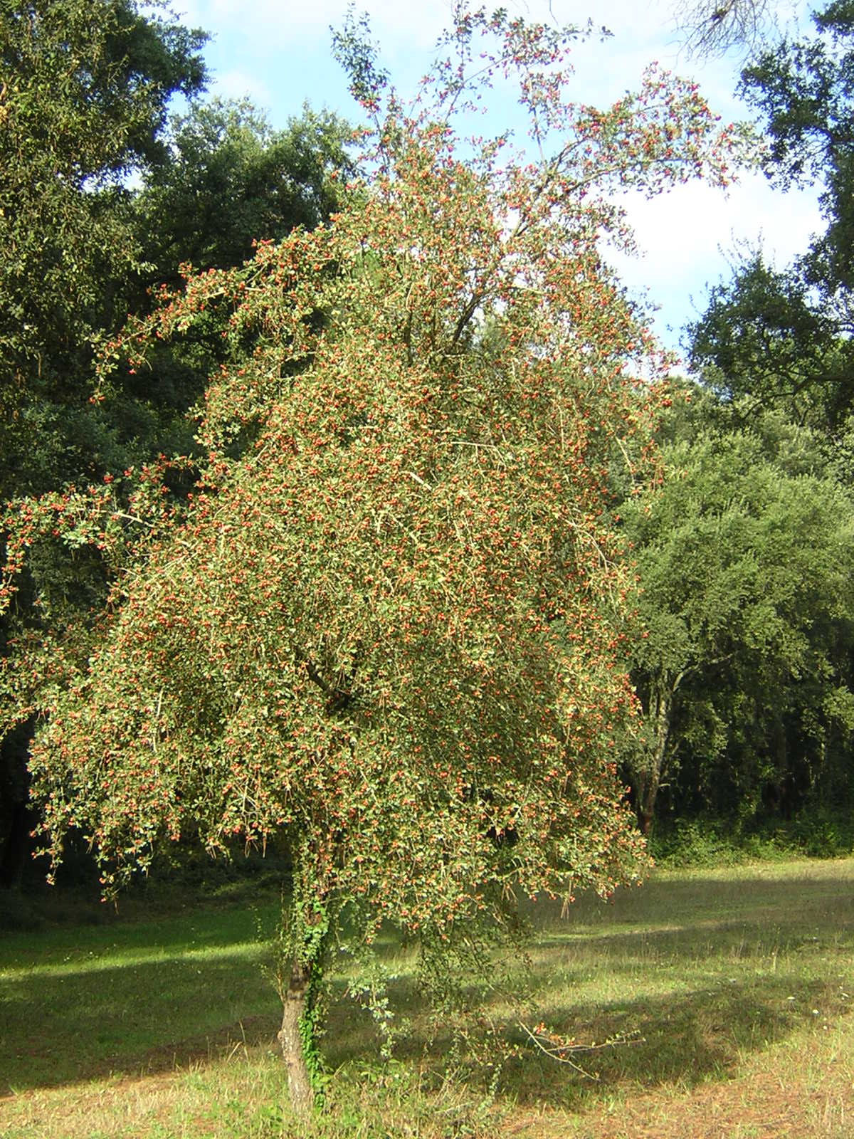 Genere di 200 specie o più specie di alberi e arbusti decidui, talvolta semidecidui, di solito spinosi, originarie dei boschi e delle boscaglie delle regioni temperate settentrionali. Il Crataegus monogyna è un arbusto o piccolo albero deciduo molto longevo, alto fino a 4-6 metri caratterizzato da chioma tondeggiante e tronco ben ramificato di colore grigiastro nelle giovani piante e bruno in quelle adulte. I rami laterali sono generalmente dotati di spine aguzze lunghe fino a 2 cm. Le foglie sono alterne, semplici, a margine dentato, di colore verde brillante. I fiori, gradevolmente profumati, sono di colore bianco o rosato e compaiono riuniti in infiorescenze erette. I frutti sono drupe carnose di colore rosso riunite in densi grappoli che permangono sulla pianta fino a inverno inoltrato.