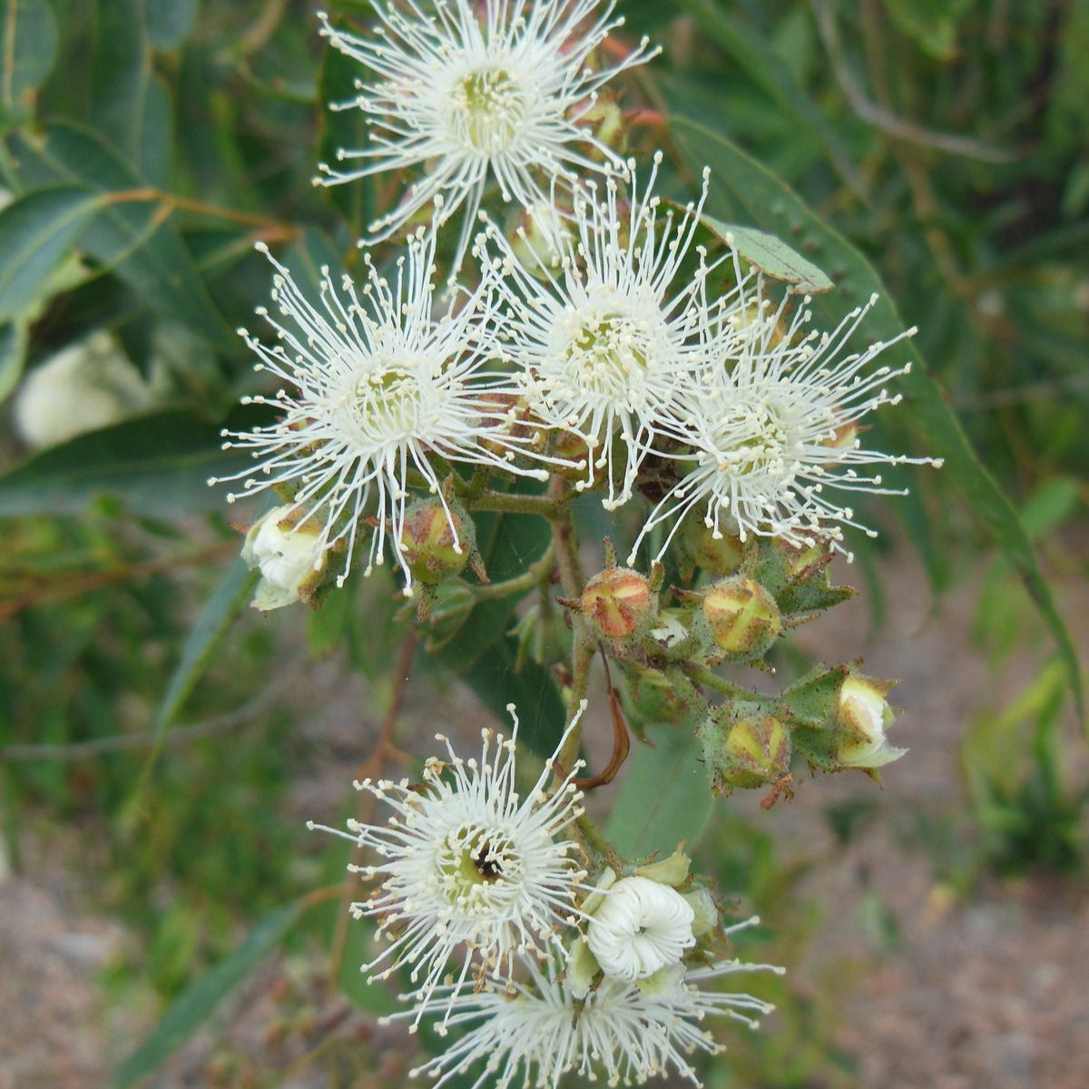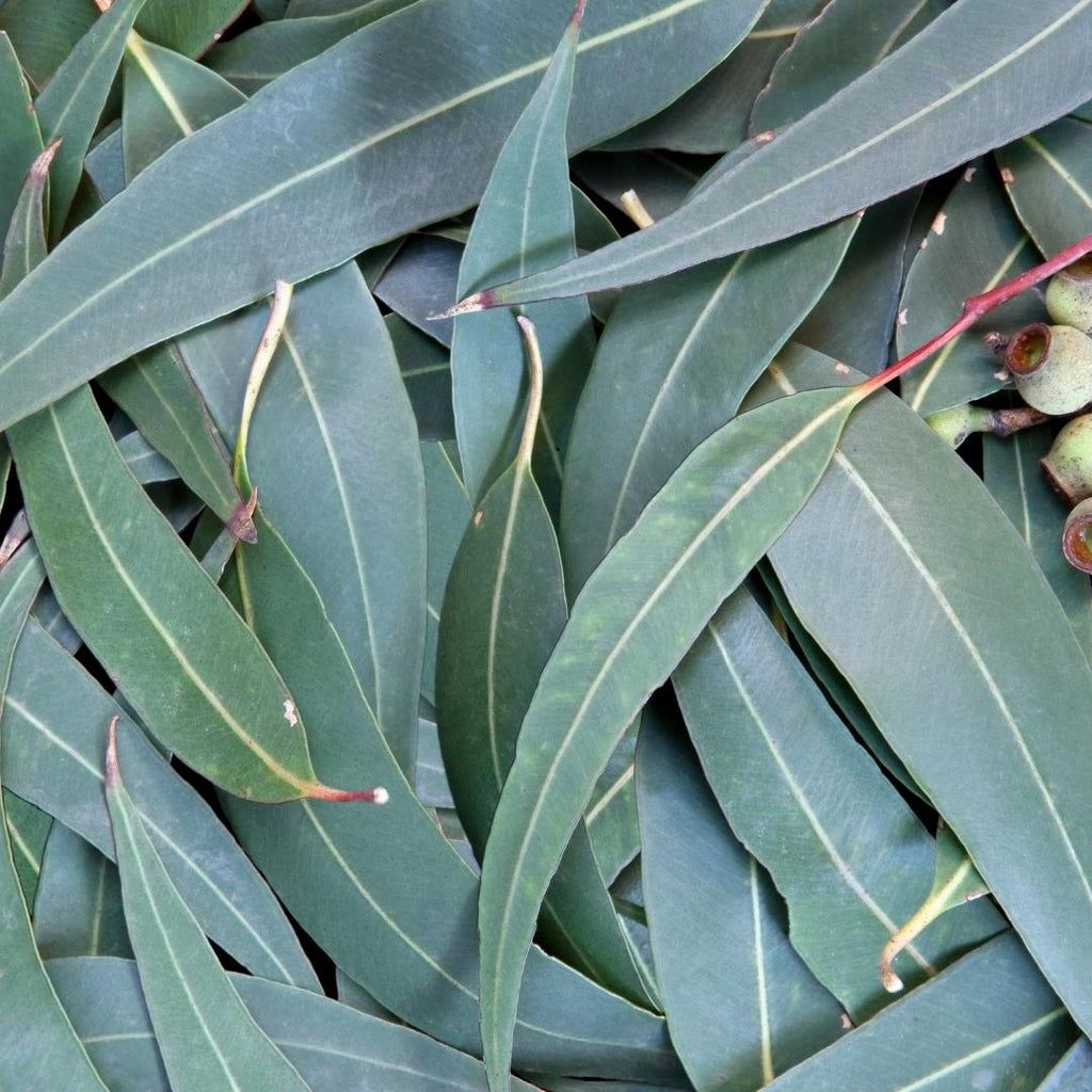 Genere di oltre 700 specie di alberi e arbusti sempreverdi, presenti in tutti gli habitat ad eccezioni di quelli particolarmente aridi, perlopiù in Australia, ma anche nelle Filippine, in Malaysia, in Indonesia e in Papua Nuova Guinea. L’Eucalyptus globulus è un albero sempreverde di grandi dimensioni con fusto dritto e rami slanciati. Nel suo habitat naturale può raggiungere un'altezza che va oltre i 40 m, ma in Europa difficilmente supera i 20 m. Particolarità di molte specie di Eucalyptus come anche per E. globulus è la muta della corteccia, che si verifica generalmente a fine estate. La corteccia si stacca dal tronco e dai rami principali scoprendo quella nuova azzurrognola. Le foglie sono di forma ovato-lanceolata, molto aromatiche di colore verde chiaro con riflessi grigio argentei. Dalle sue foglie si estrae l’eucaliptolo, un olio molto usato in medicina ed erboristeria. I fiori sono vistosi e dalla forma globosa, di colore bianco crema e vengono portati da infiorescenze singole.