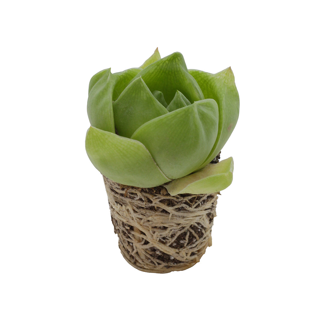 Genere che comprende circa 150 specie di piccole piante succulente perenni, originarie delle regioni aride del Sudafrica, appartenenti alla famiglia delle Asphodelaceae. Haworthia cymbiformis è una succulenta compatta, sempreverde, a crescita lenta, con portamento cespitoso. Le rosette, di forma pressoché globosa, sono composte da foglie carnose, spesse e translucide, di colore verde chiaro. Le foglie sono disposte in spirale, con apice arrotondato e margini lievemente incurvati verso l’interno, conferendo alla pianta l’aspetto “a barchetta” che le dà il nome (dal latino cymba, piccola imbarcazione). In primavera inoltrata o inizio estate produce infiorescenze su lunghi steli sottili, portanti piccoli fiori tubolari di colore bianco con leggere striature verdastre.