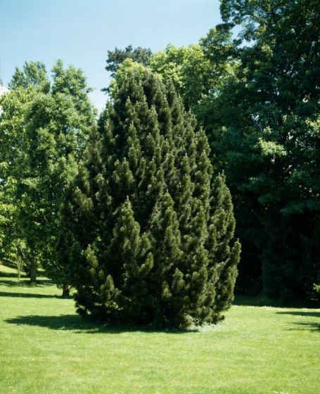 Genere che comprende circa 120 specie di conifere arboree o arbustive sempreverdi, monoiche, lungamente diffuse nelle foreste dell’emisfero settentrionale dal circolo polare artico all’america centrale, in europa, africa settentrionale e asia sudorientale. Il pinus mugo var mughus è una conifera nana a chioma tondeggiante e compatta che non supera i 1,5 m d'altezza e i 2 m di larghezza. Gli gli aghi lunghi 3- 4 cm di colore verde scuro sono riuniti in mazzetti alle estremità dei rami. La fioritura avviene a maggio e i fiori si distinguono in maschi, di colore giallo-arancio, alla base di ogni germoglio e femmine, di colore rossiccio, all'apice di ogni ramo.