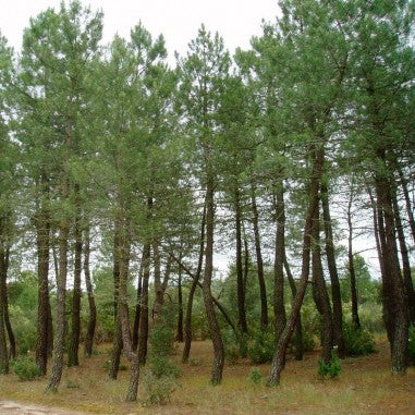 Genere che comprende circa 120 specie di conifere arboree o arbustive sempreverdi, monoiche, lungamente diffuse nelle foreste dell’emisfero settentrionale dal circolo polare artico all’America centrale, in Europa, Africa settentrionale e Asia sudorientale. Il Pinus pinaster è un caratteristico pino della macchia mediterranea che cresce sulle coste mediterranee. Si presenta come albero eretto, talvolta prostrato, con chioma conica, poi a cupola. Gli esemplari maturi hanno corteccia molto screpolata, da arancione-marrone a porpora. Le foglie sono robusti aghi appaiati, rigidi, distanziati, grigioverdi lunghi fino a 30 cm. I frutti sono grosse pigne verdi con squame appuntite, che maturando virano al castano. Può raggiungere i 20 m di altezza.