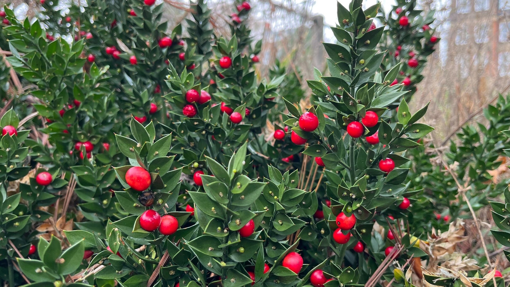 Genere di 6 specie di suffrutici sempreverdi, rizomatosi, dei boschi di madeira e delle azzorre, dell’europa e del nordafrica fino all’iran. Il ruscus aculeatus è un’erbacea perenne sempreverde alta fino a 70-100 cm, con rizoma strisciante. Fusti verdi e “foglie” lanceolate di un magnifico verde bottiglia, con aculeo apicale. In realtà non sono “foglie” ma rami modificati (cladodi) proprio come le “pale” del fico d’india. Pianta dioica, con fiori poco appariscenti e grandi bacche rosse molto decorative.